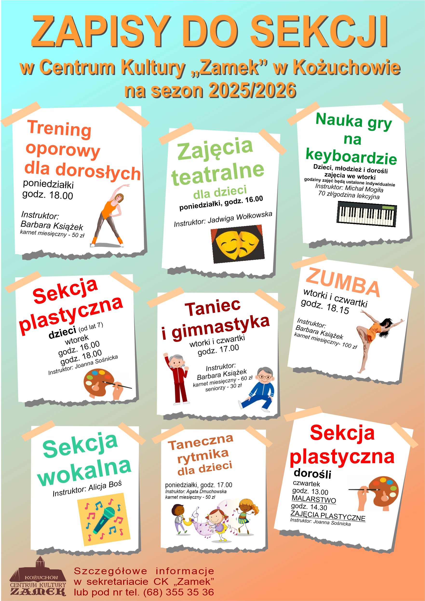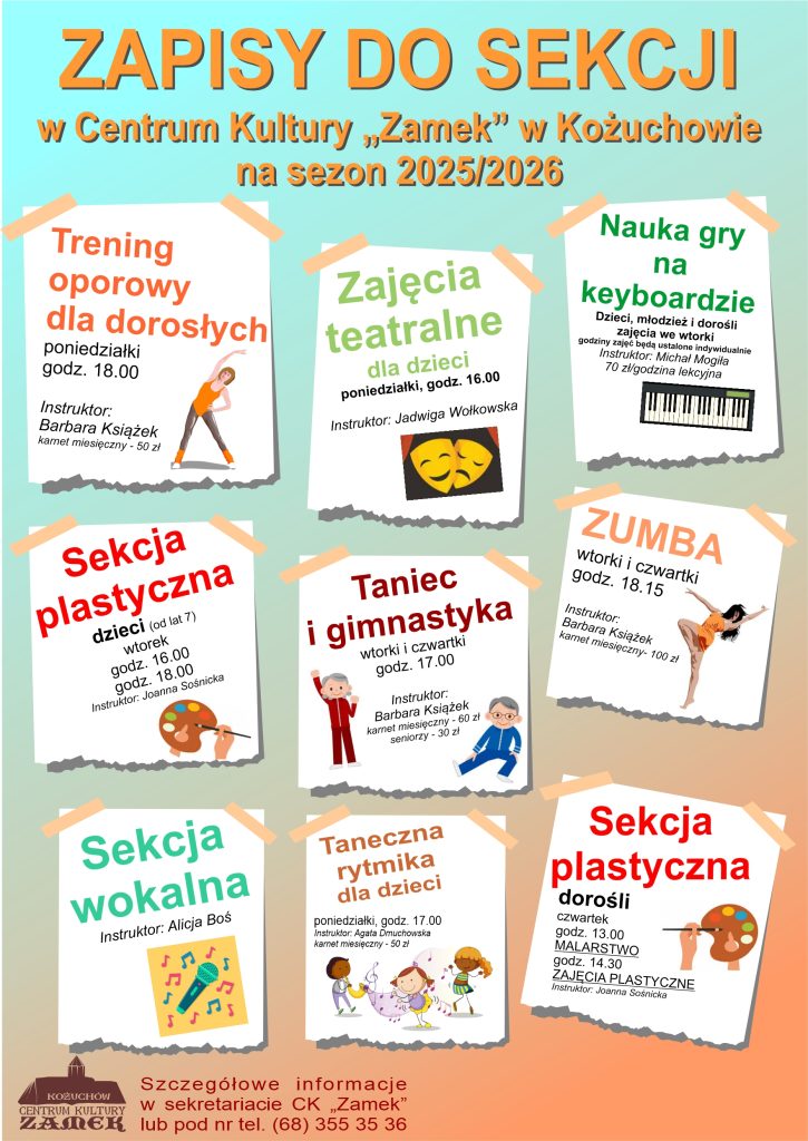 Zapraszamy dzieci i dorosłych do udziału w zajęciach artystycznych, muzycznych oraz ruchowych, w ramach sekcji działających w Centrum Kultury „Zamek” w Kożuchowie.